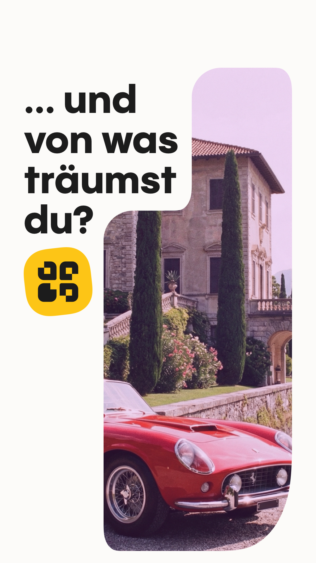 For app awareness we go for the dreaming road. We focus on peoples dreams, instead of playing the Lottery. The Layout of the image (or video) area changes based on the text lenght. We don't use disclaimers with this approach, as we don't have engagement to play the lottery.