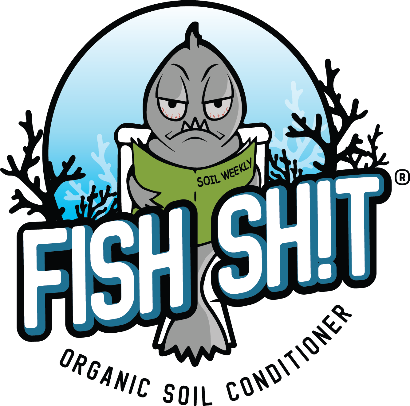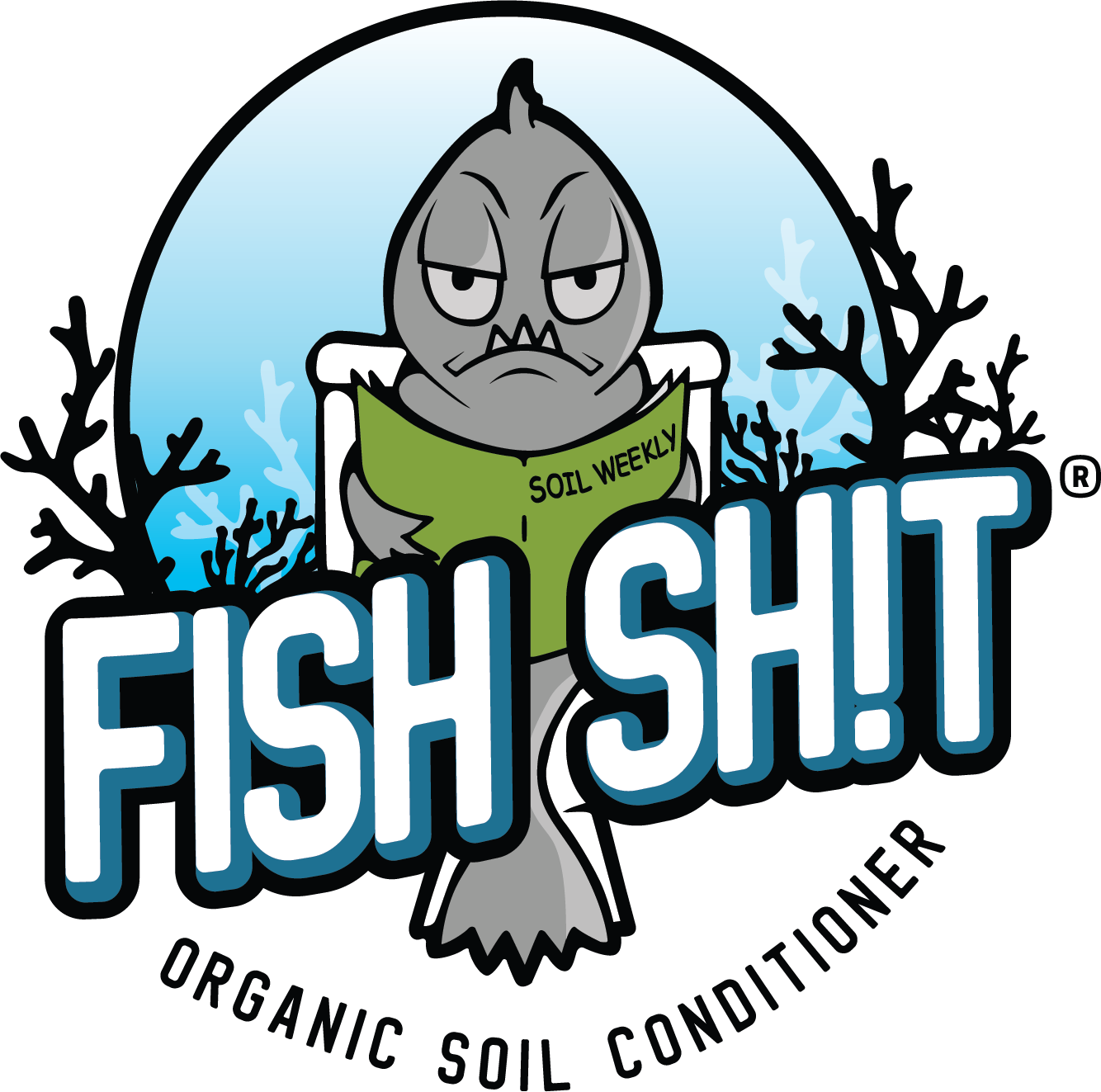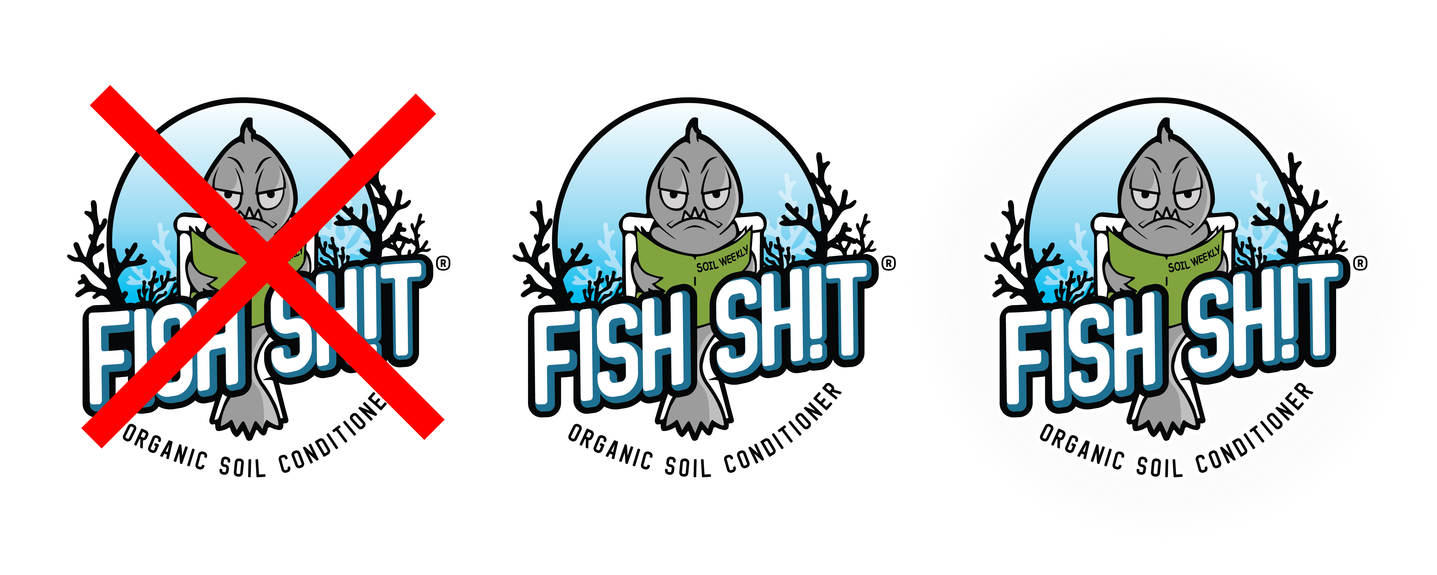 The Fish Sh!t logo reproduces well at almost any size. Going too small, however, can damage the logo’s integrity and effectiveness. Never produce the logo smaller than 1 1/2” wide.