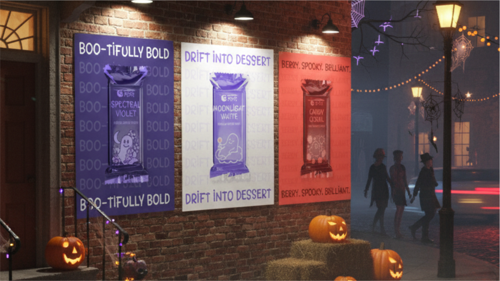 A premium, playful candy brand reimagining Halloween with modern minimalism, warmth, and charm.