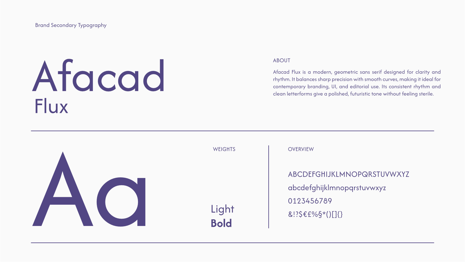 Afacad Flux grounds the system -geometric, clean, and confident.