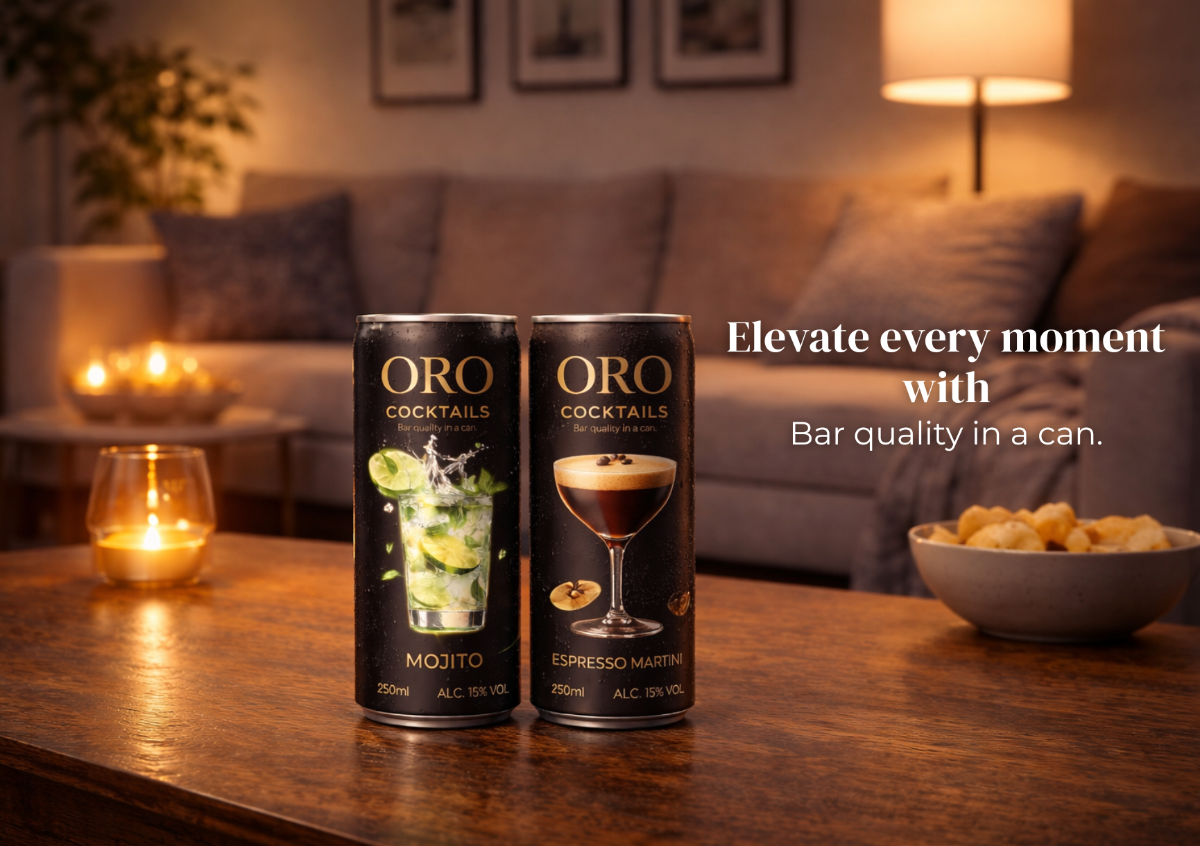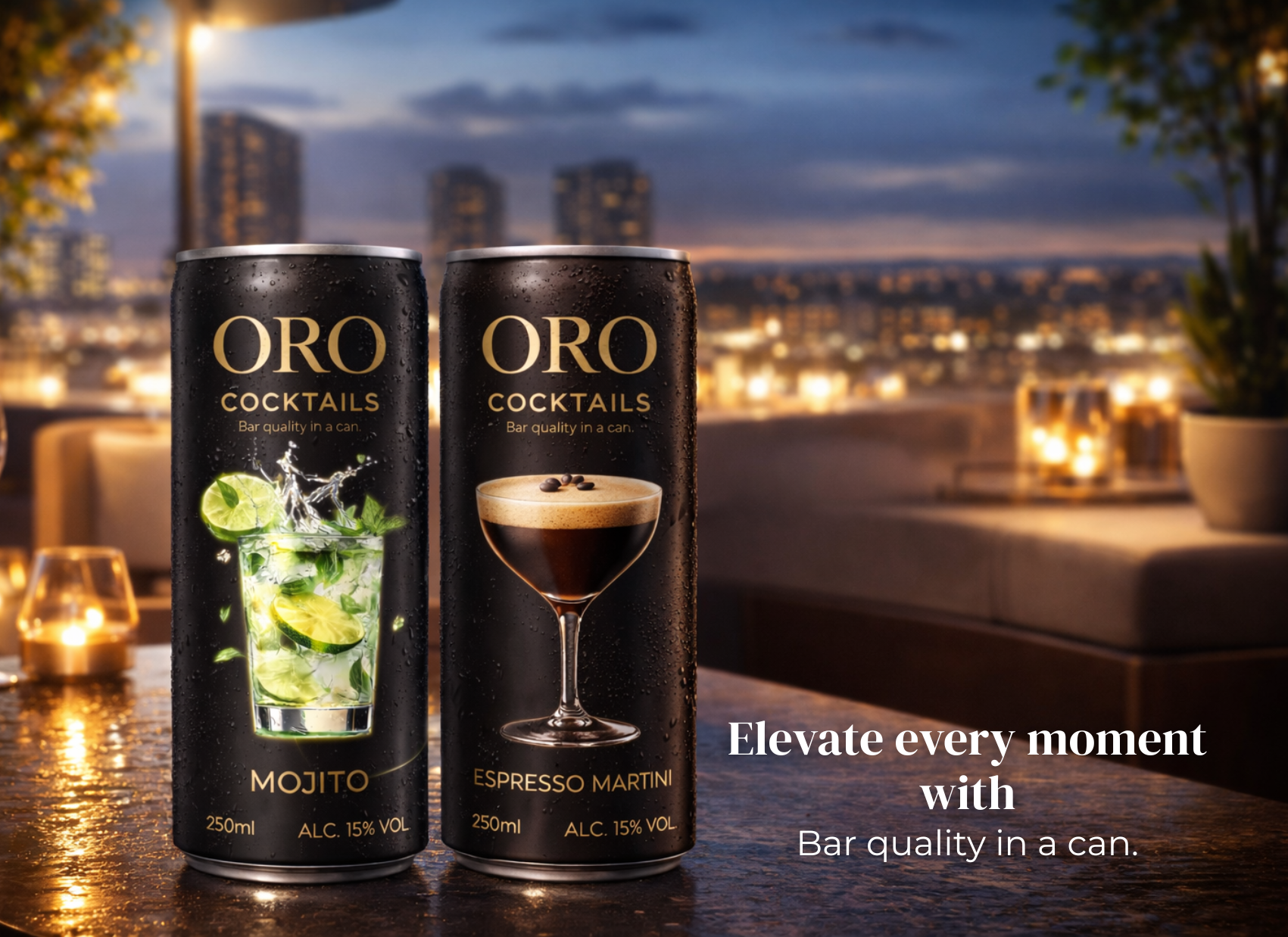 Het merk is opgericht met één duidelijke missie: cocktailbar kwaliteit combineren met het gemak van een ready-to-drink blikje. Met hoogwaardige ingrediënten en authentieke recepturen, brengt ORO de ervaring van een premium cocktail naar iedere gelegenheid.