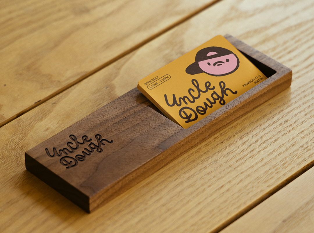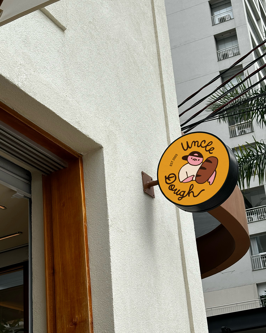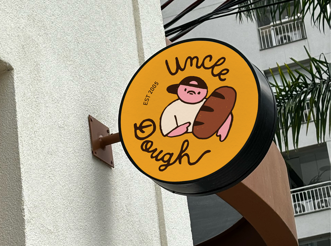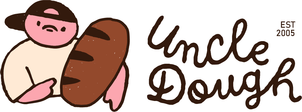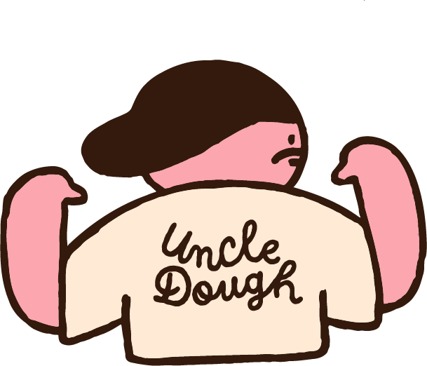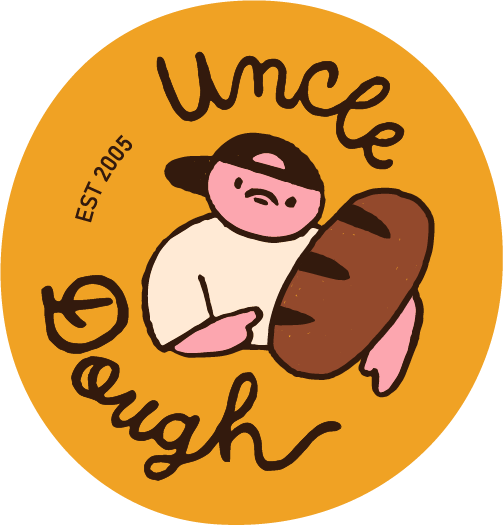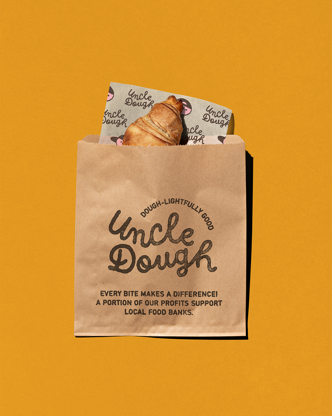 The logo ventures into a few different directions at once. It's modern, cute, and colorful, with a delightful handmade charm. It's all about Uncle Dough and his passion for baking delicious treats for his neighborhood.