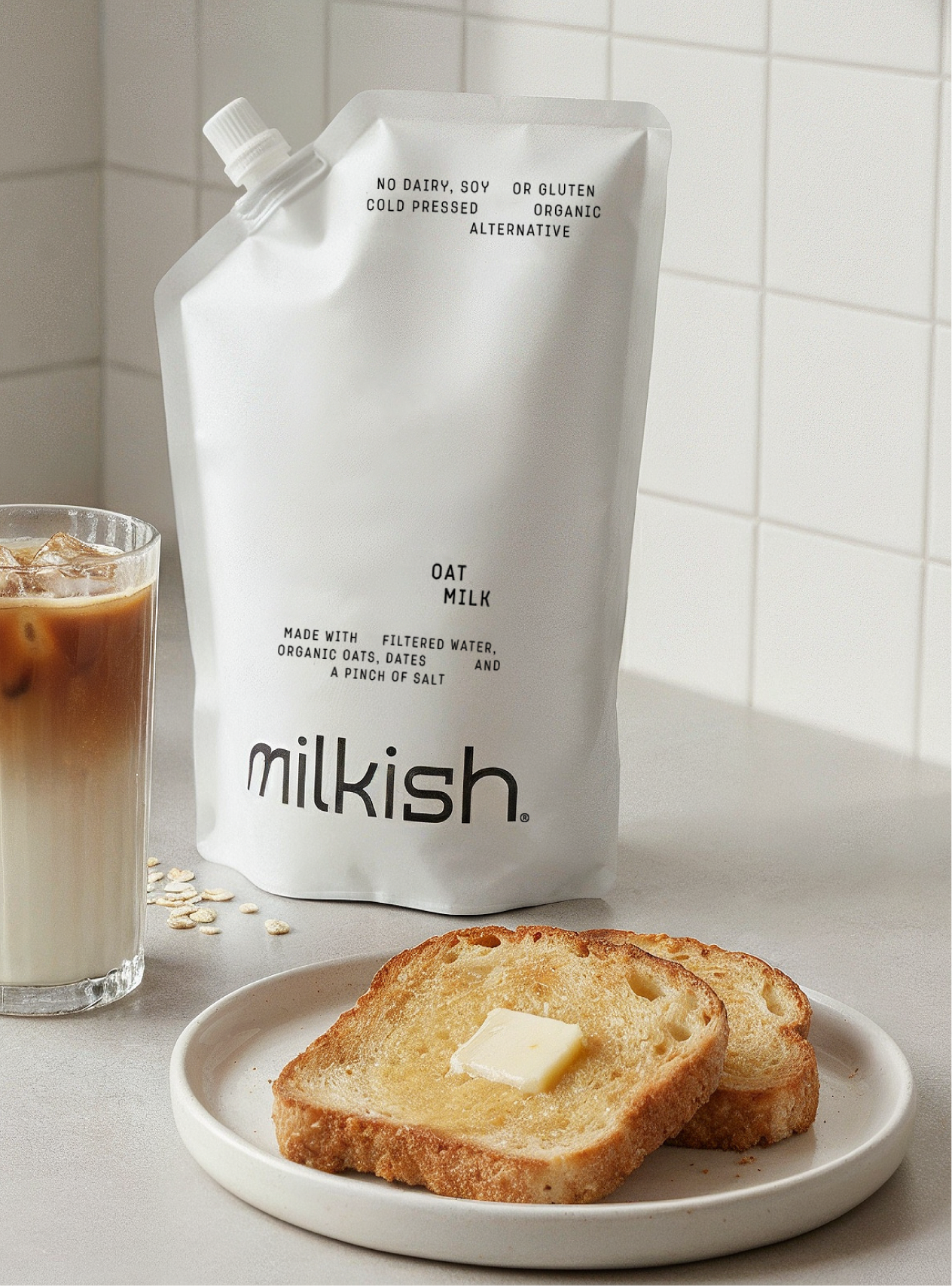 Milkish arrives as the antidote to the noisy, cluttered dairy aisle. Driven by the belief that the future of milk is lighter, cleaner, and calmer, the brand boldly ditches the conventional carton for a sleek, easy-pour sachet that feels decidedly premium.